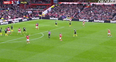 布鲁诺·费尔南德斯主罚,卡塞米罗把握住这次本应不存在的定位球,跃起头球冲顶入网,曼联1-0诺丁汉森林。
